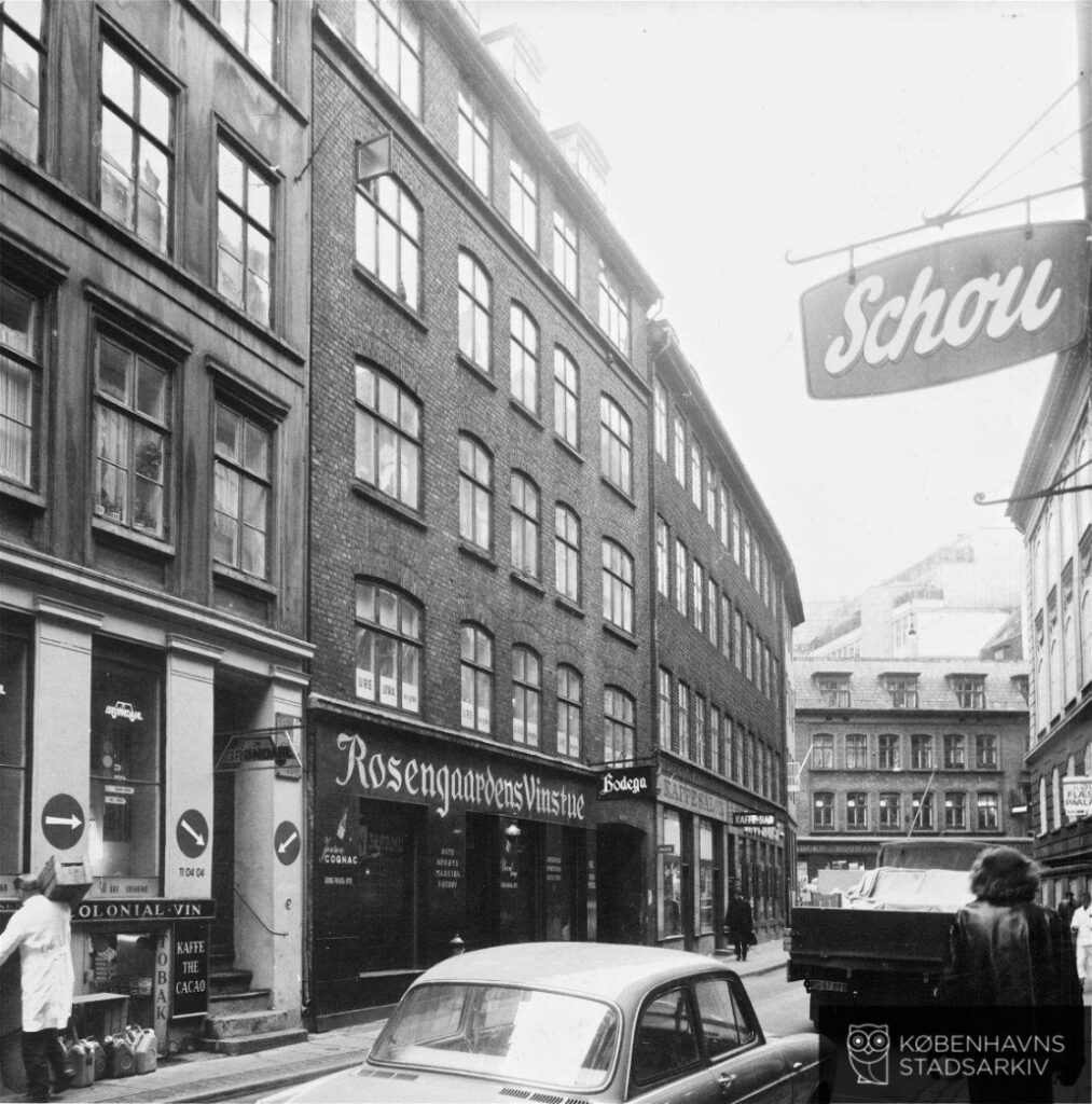 2. februar 1966. Endnu ser facaden på Rosengårdens Vinstue nøjagtig ud som 22 år før. Dengang, da stedet blev indskrevet i historien, som "det var her det skete". (Foto: Københavns Stadsarkiv).