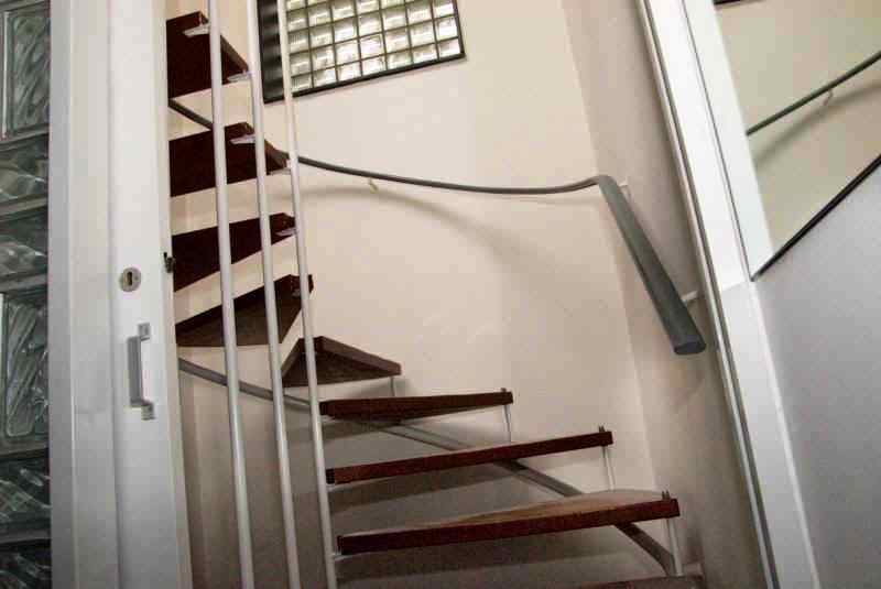 Trappe fra kælderen hvor Lizzie Christensen stod. Hun kaldte op til Irma Rasmussen, der bad hende kalde "Hjælp".
