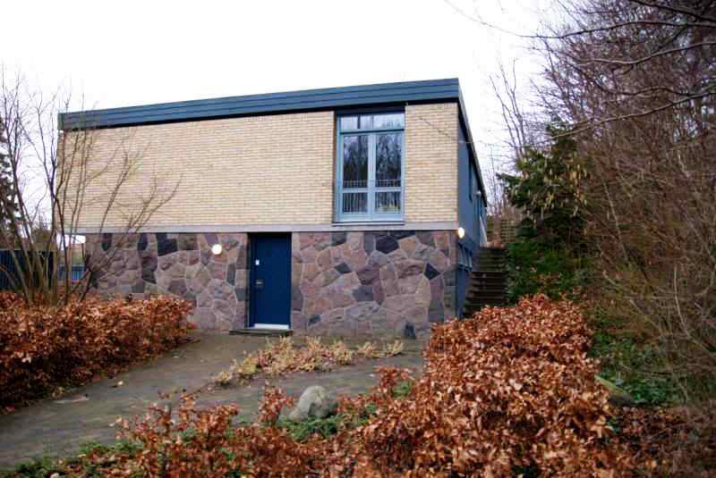 17. maj 2005. Østgavl af Hestehavevej 2B ud mod Oddervej op mod Kirkeskoven. Villaen var indrettet med omtanke. Ingen naboer ville opdage, hvis gæster kom ind ad hoveddøren på nordsiden af huset op mod skoven eller ad døren i østgavlen ud mod Oddervej.