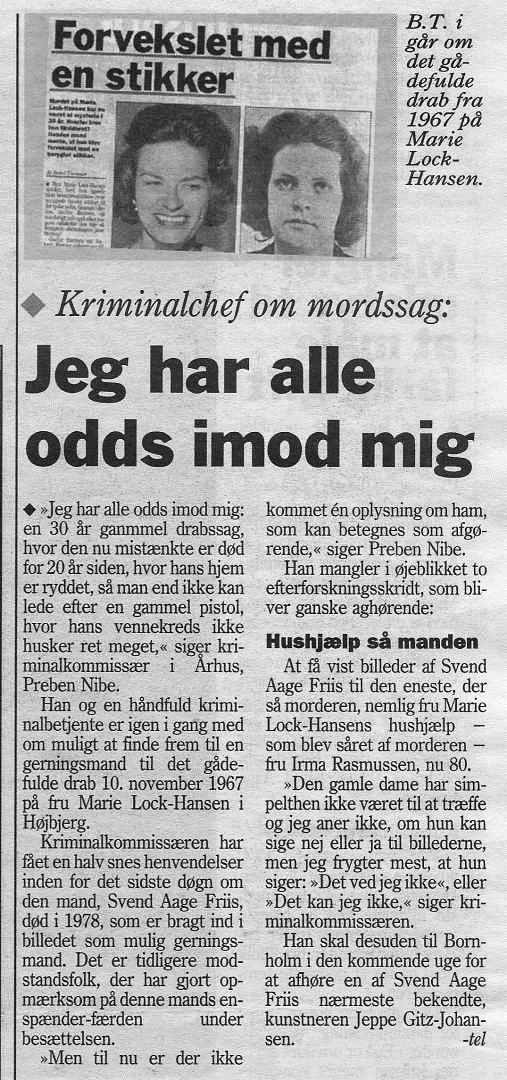 Marie Lock-Hansen og Irma Rasmussen sad i dagligstuen fredag den 10. november 1967 kl. 10.50, da der blev ringet på døren.