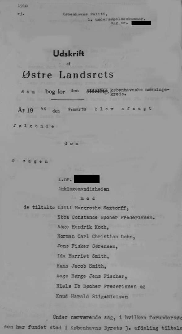 Alle dømt efter Straffelovens § 237. En enkelt yderligere efter § 245. Straf mellem 2 og 6 års fængsel. 3 af de tiltalte fik betingede fængselsstraffe. Privat brev fra 1992 om en af de dømte sendt til en kriminalreporter.