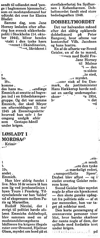 Læs her, hvad den kendte kriminalreporter Poul Dalgaard skrev om Meyer og Emmik. "Tilsyneladende faldet af toget".