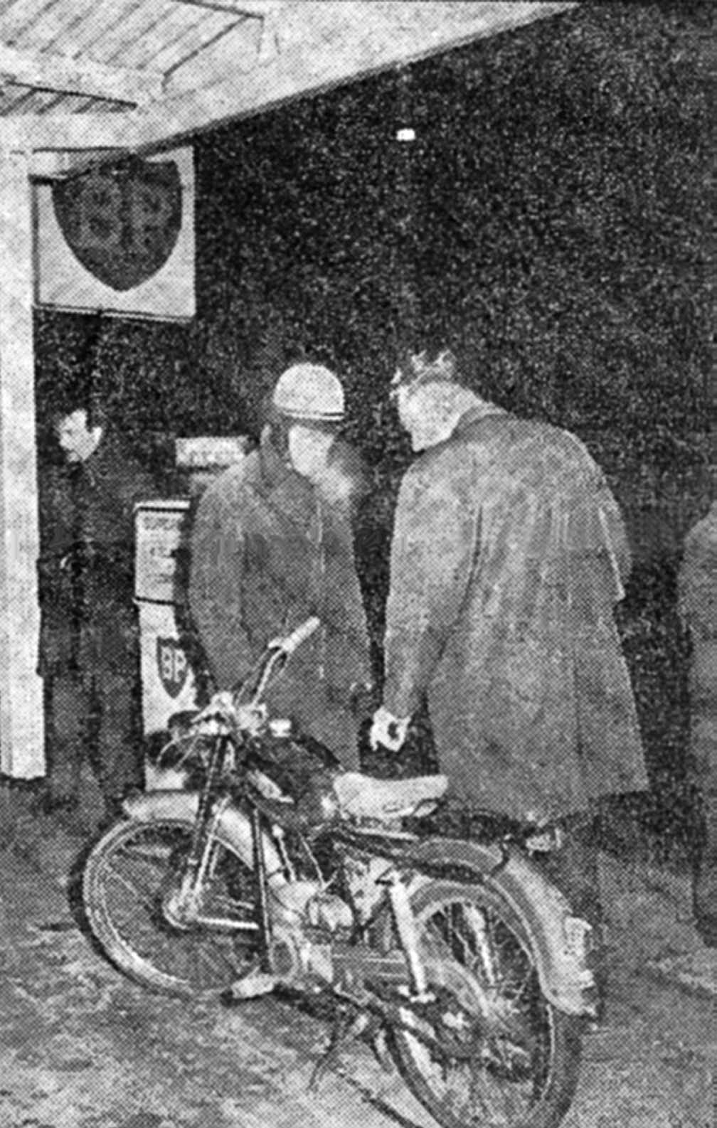Ved. 22.30 tiden 9. marts 1966 havde en forbipasserende set fru Mikkelsen sælge knallertbenzin.